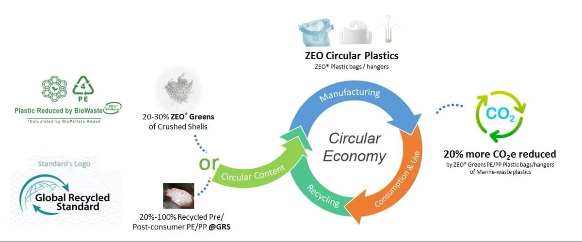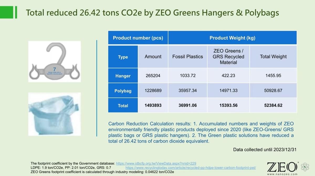 ZEO Circular Plastics Sustainable Solutions – Low-Carbon Plastic Bags/Hangers: Use circular content like bio-waste (crushed shells) or recycled plastics (GRS, Global Recycle Standard Certified) to replace fossil plastics and reduce CO2 emissions by more than 20%.